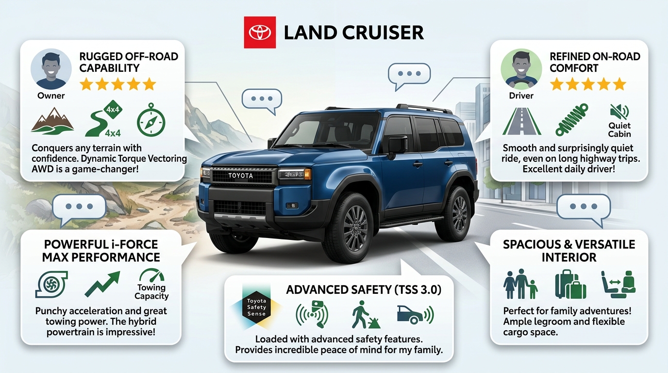 ランクル250の口コミを総合すると、走行性能・デザイン・安全装備への満足度は非常に高い一方で、燃費・維持費・取り回しへの覚悟が必要です。大型SUVを日常的に使う生活環境かどうかを事前に確認した上で購入判断することをおすすめします。提供されたHTMLテンプレート