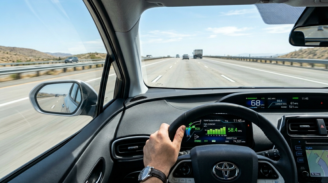 プリウスのハイブリッドシステムは低速・中速走行でEVモードを活用できますが、高速巡航ではエンジンが主体となるため、市街地ほど燃費が良くならない特性があります。